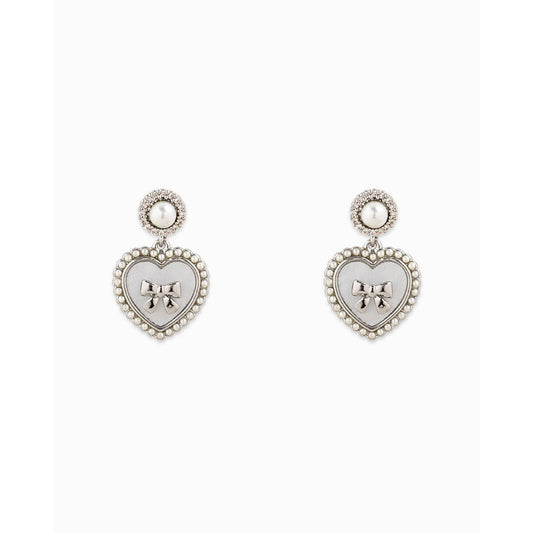 Pearlized Heart Bow Drop Earrings