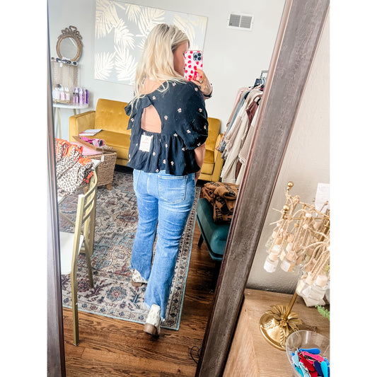 Black Floral Embroidered Top