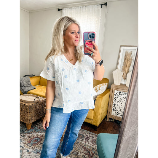 Sold outBlue Flower Embroidered Top