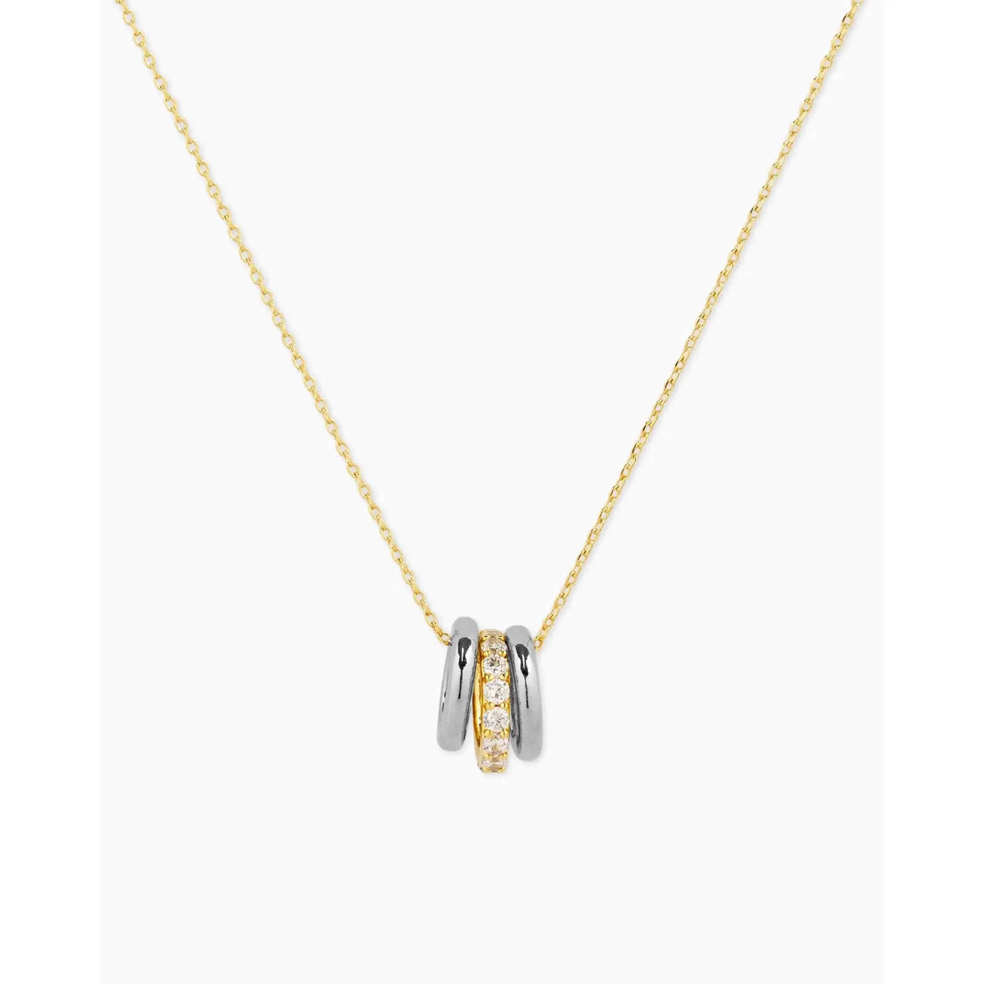 Featuring sparkling CZ stones set in a delicately crafted rondelle charm, this necklace will is a classic yet stunning piece to add to your jewelry collection.