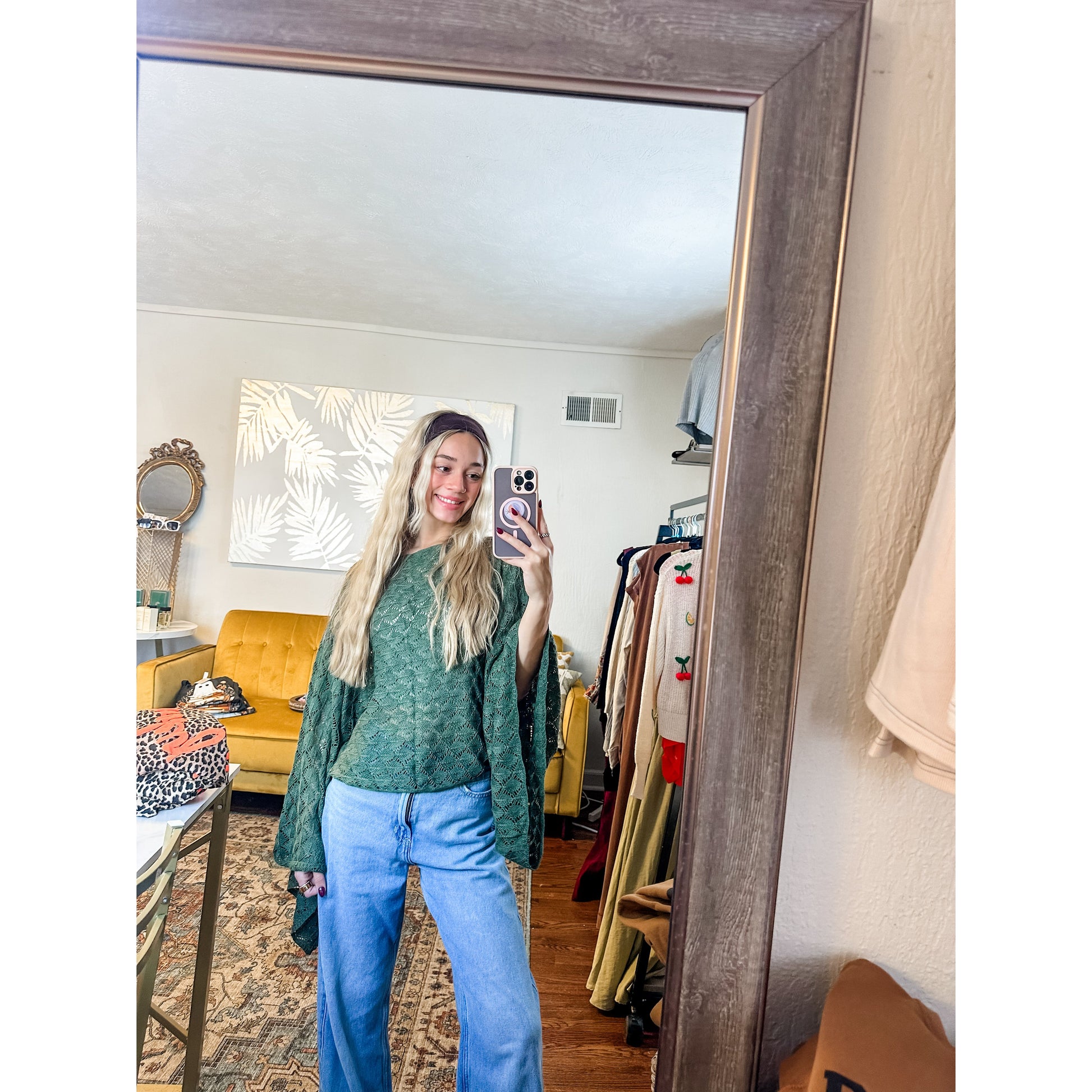 Get ready for some real cute boho vibes with this bell sleeve knit top! So easy to throw on and looks cute with everything! This knit top is breezy cool and perfect for ALL SEASONS!