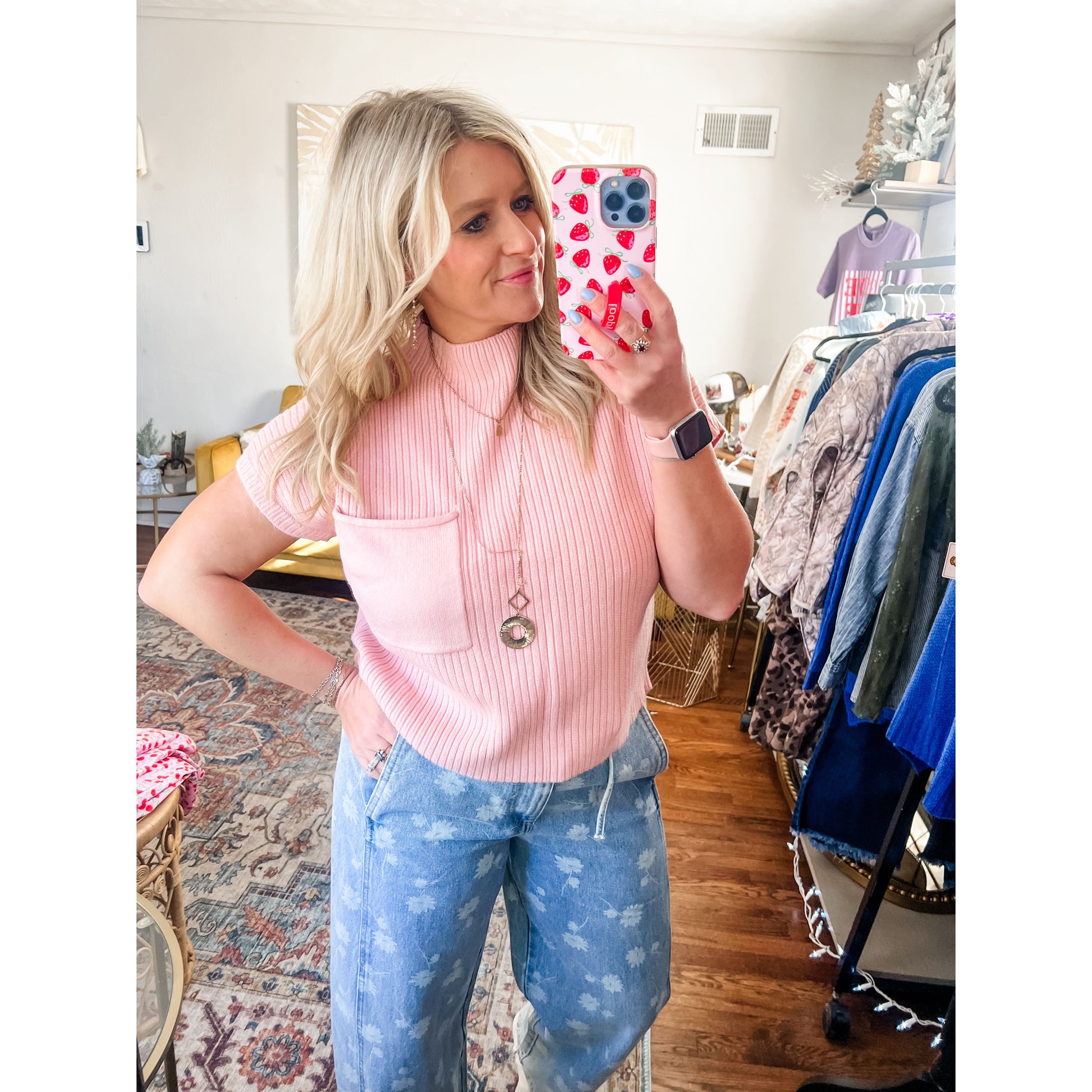 -light pink mock neck pocket detail
