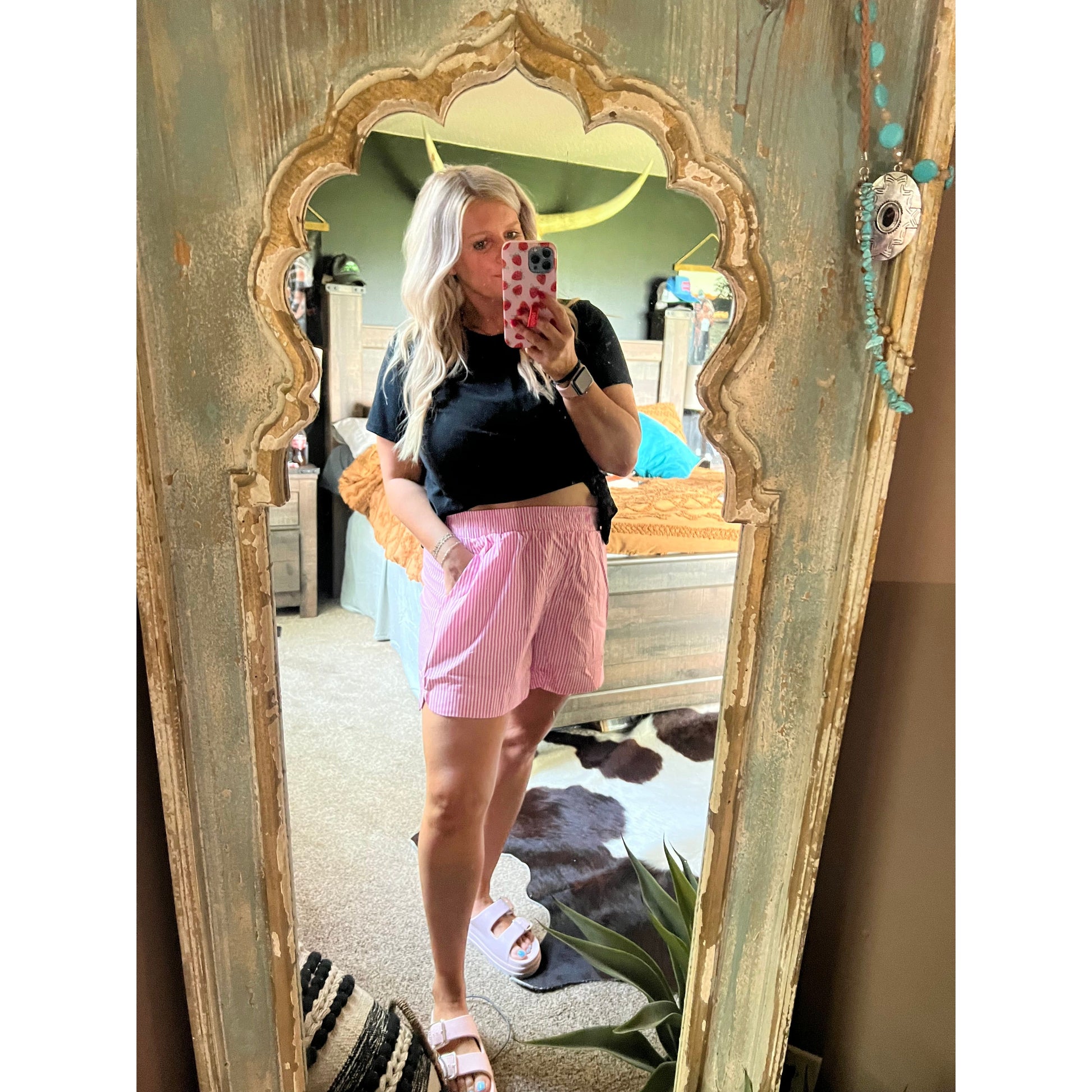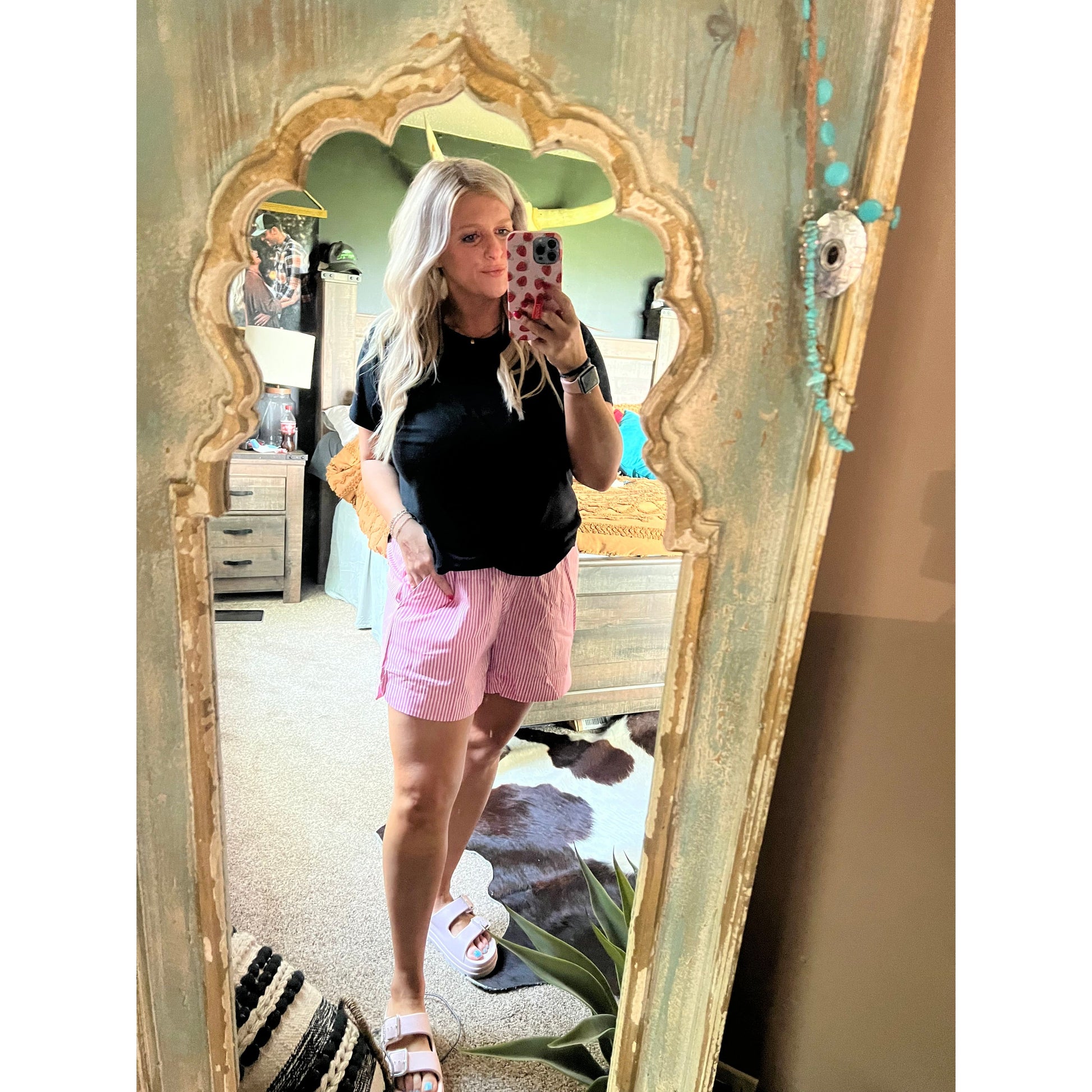 -cute pink striped print boxers with elastic band and pockets.