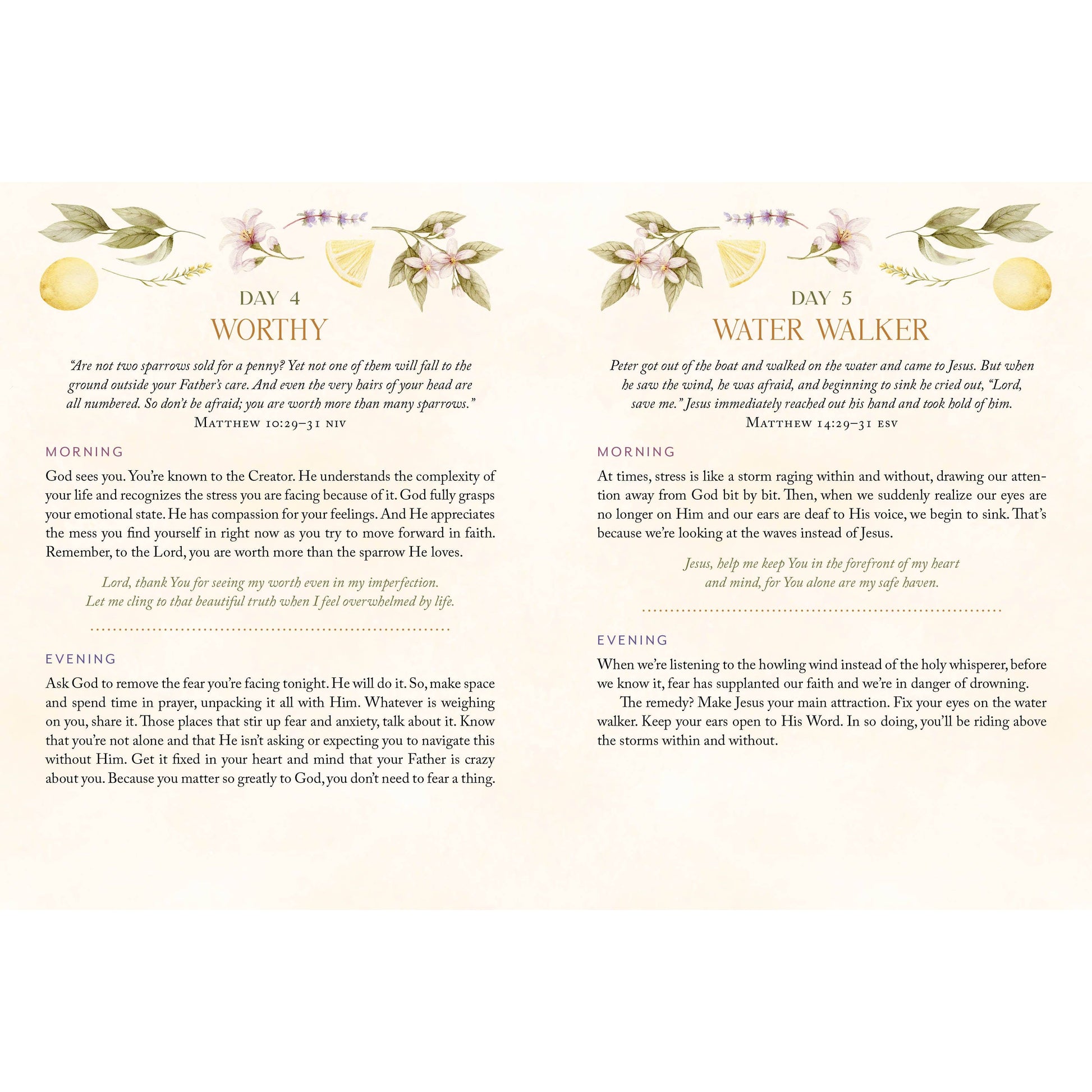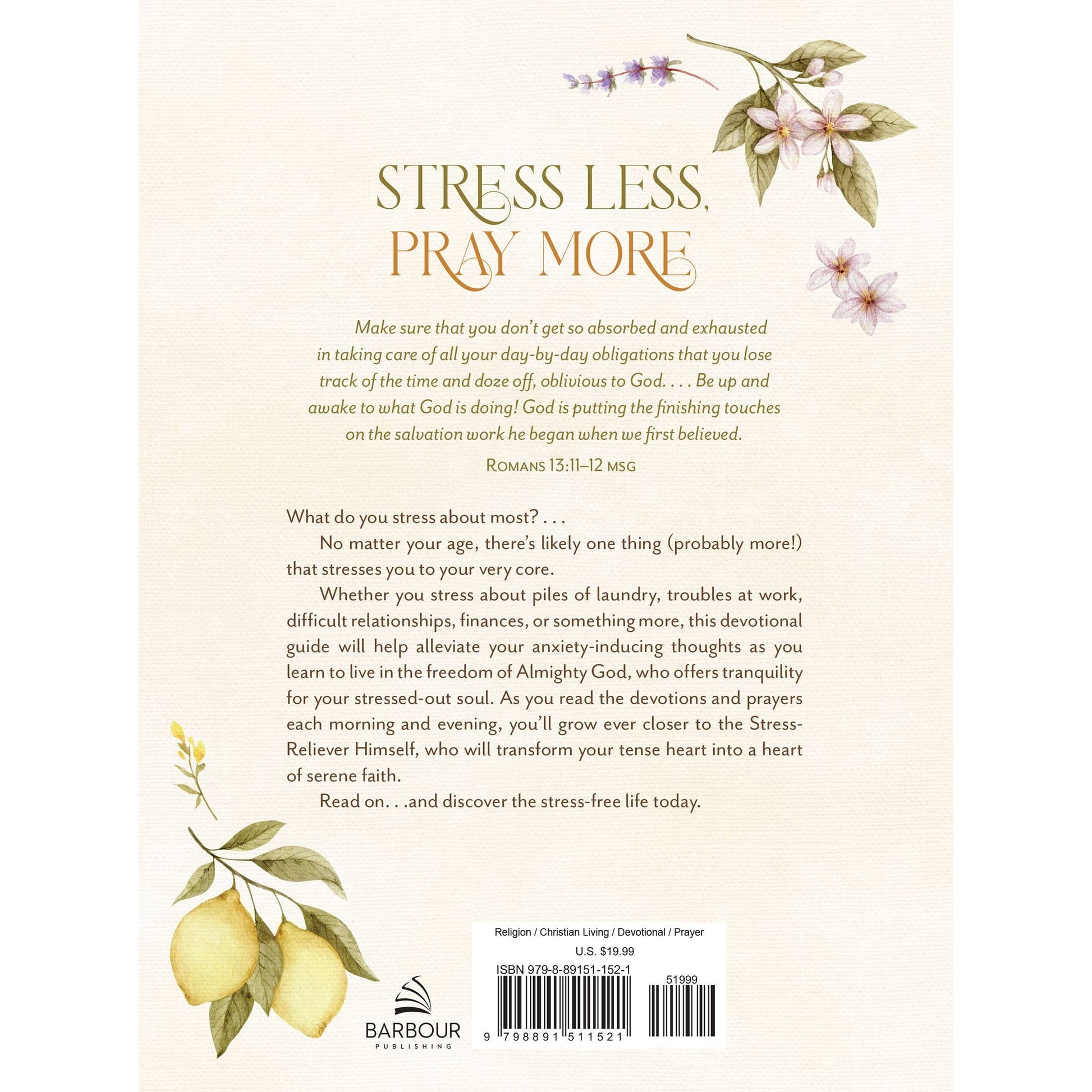 Whether you stress about piles of laundry, troubles at work, difficult relationships, finances, or something more, this devotional guide will help alleviate your anxiety-inducing thoughts as you learn to live in the freedom of Almighty God, who offers tranquility for your stressed-out soul. As you read the devotions and prayers each morning and evening, you'll grow ever closer to the Stress-Reliever Himself, who will transform your tense heart into a heart of serene faith.