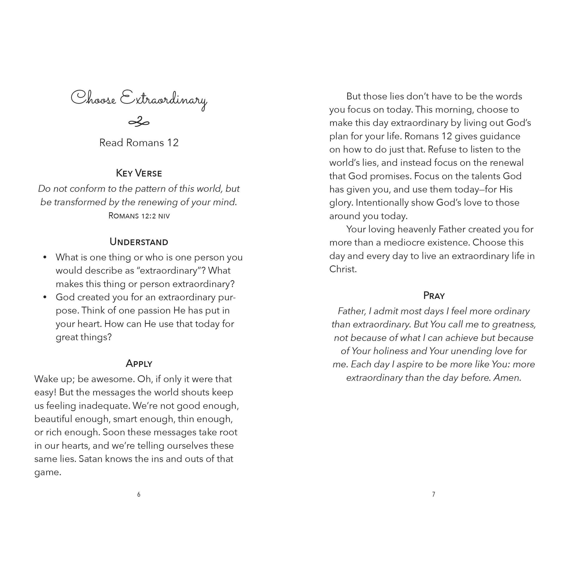 Minute 4: Apply. Read a brief devotional based on the scripture you read. Think about what you are learning and how you can apply the scriptural truths to your own life.