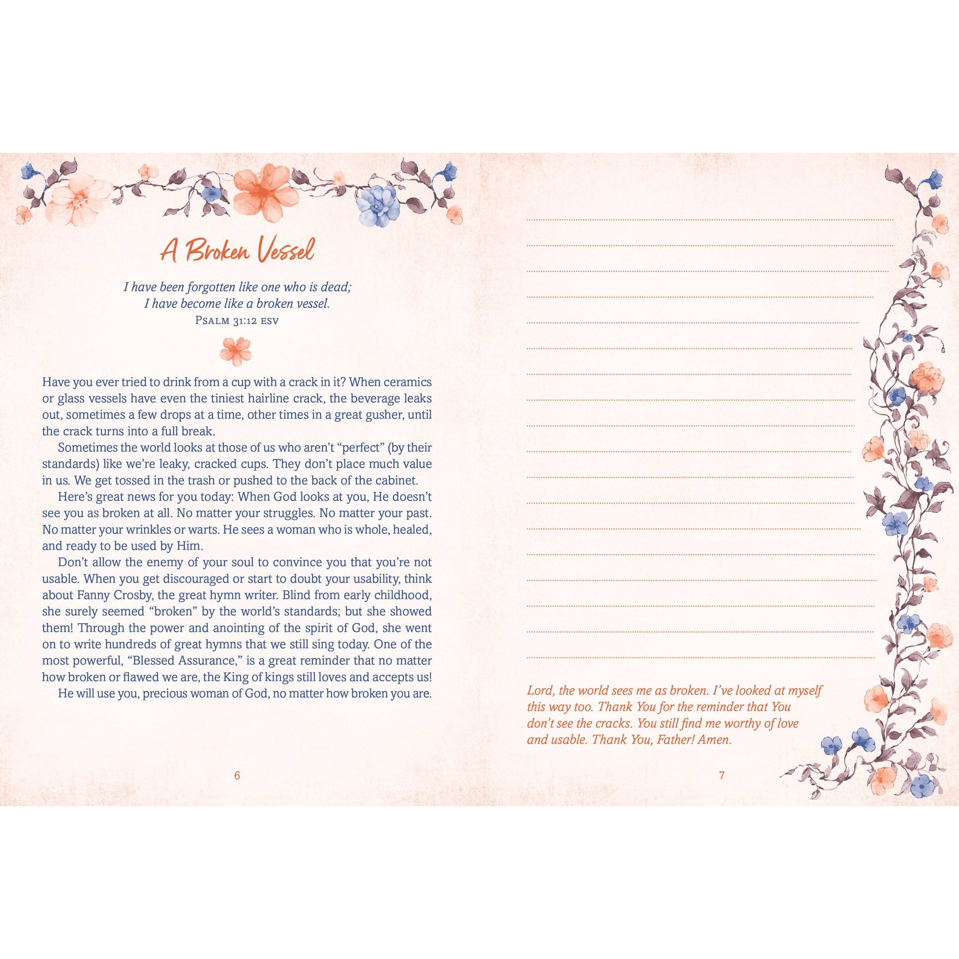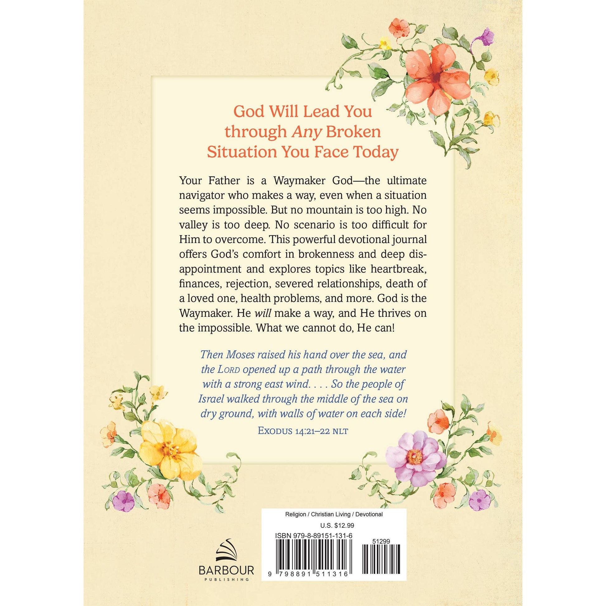 Your Father is a Waymaker God—the ultimate Navigator who makes a way, even when a situation seems impossible. But no mountain is too high. No valley is too deep. No scenario is too difficult for Him to overcome. This powerful devotional journal written for women going through seasons of brokenness and disappointment and offers biblical encouragement on topics like